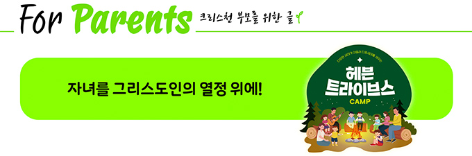 '헤븐 트라이브스 캠프'는 캠프의 형식을 빌려 자녀들이 자연스럽게 믿음의 가치를 듣고 보고 경험함으로, 그것을 자기 삶의 기준으로 삼아 그리스도인의 열정을 가지고 살아가도록 합니다. 여러분의 자녀도 헤븐 트라이브스 캠프를 통해 그리스도인의 열정 위에 세워질 수 있도록, 2026년 겨울·여름 헤븐 트라이브스 캠프에 참여해 보시면 어떨까요? 다양한 세대가 함께 그리스도인의 열정을 확립하는 헤븐 트라이브스 캠프에 여러분을 초대합니다!